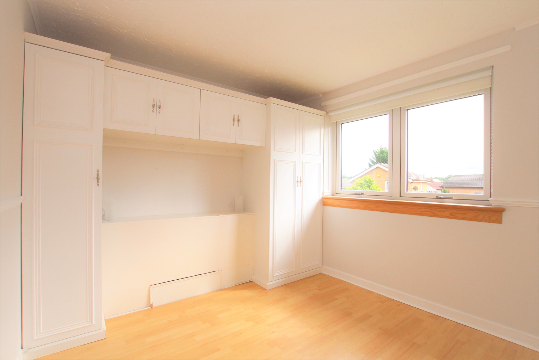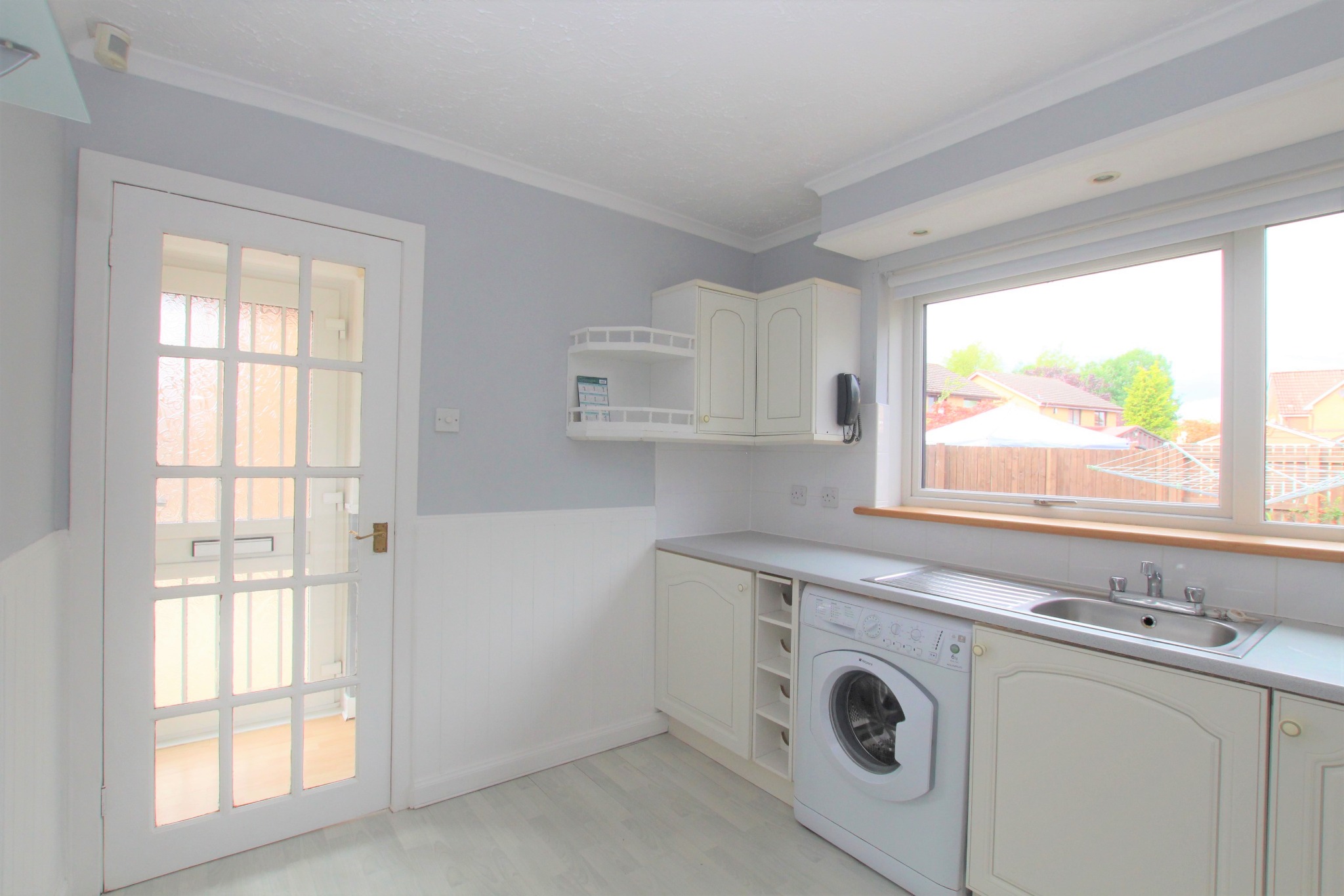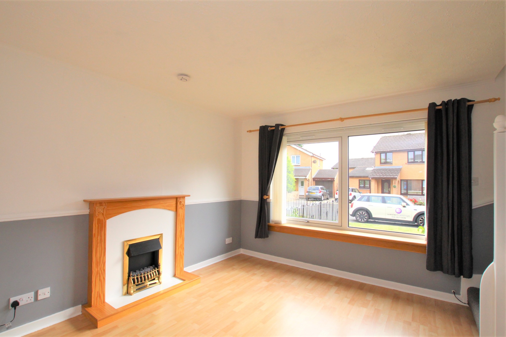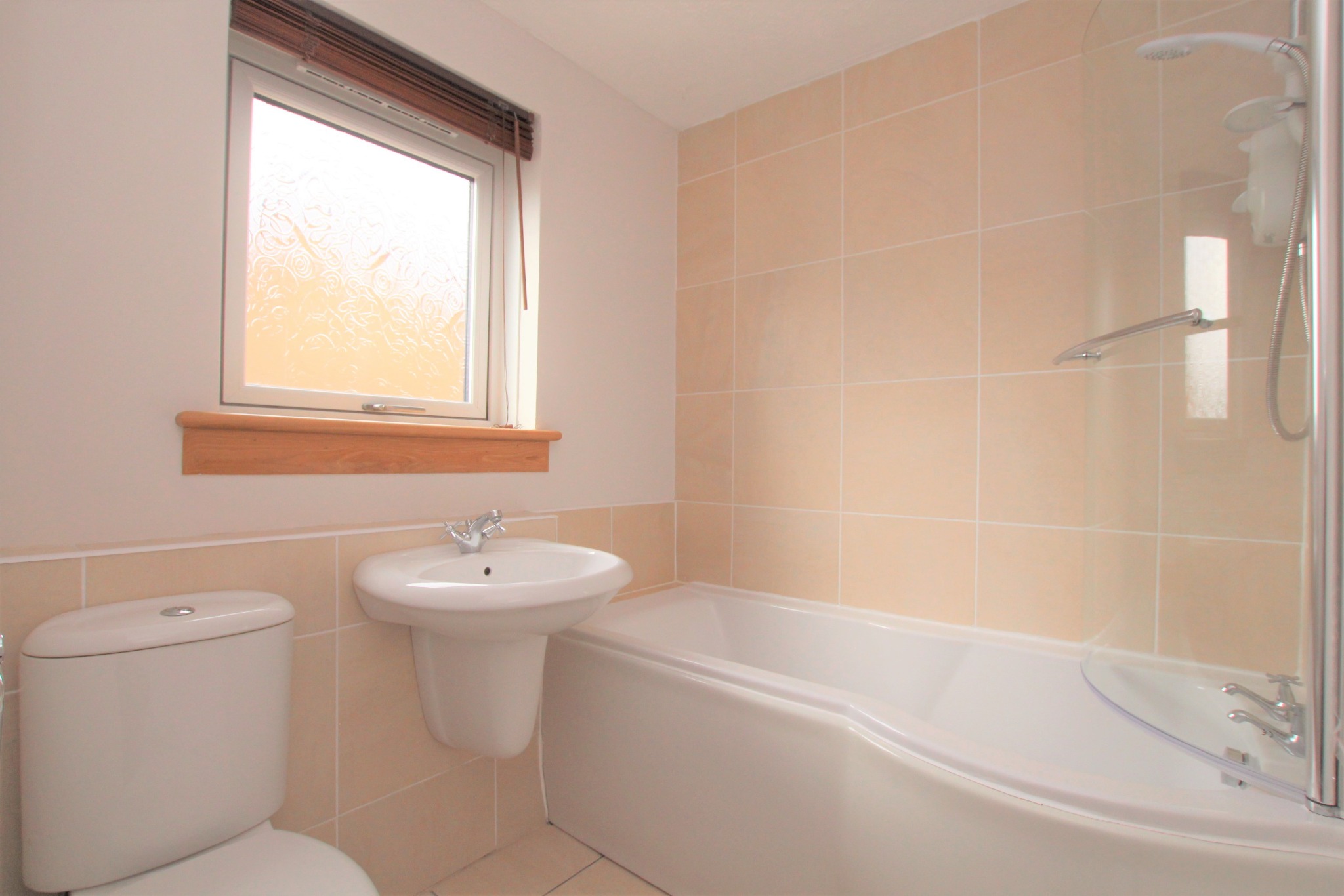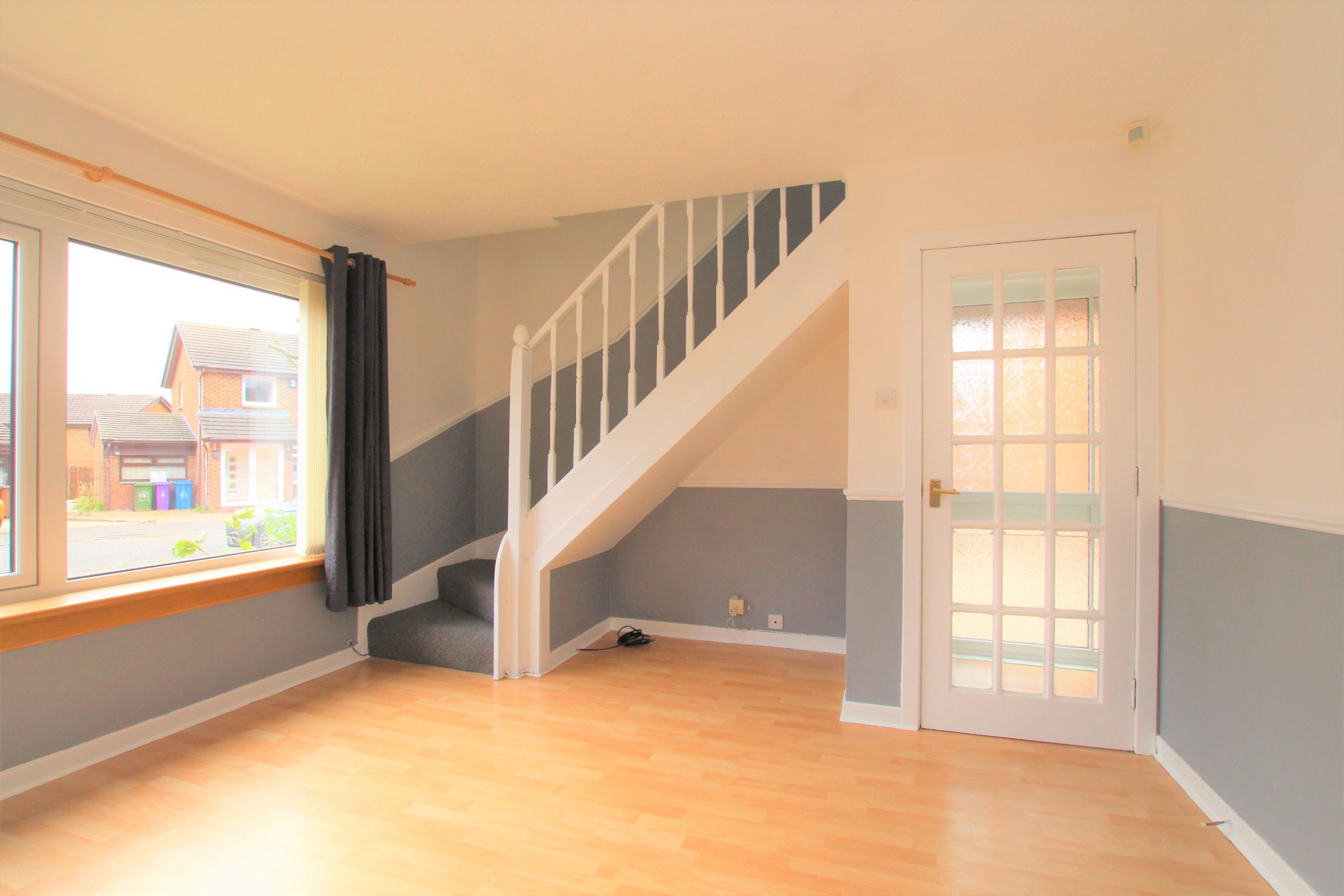 A semi-detached, unfurnished two-bedroom house is available in the Darnley district of Glasgow.