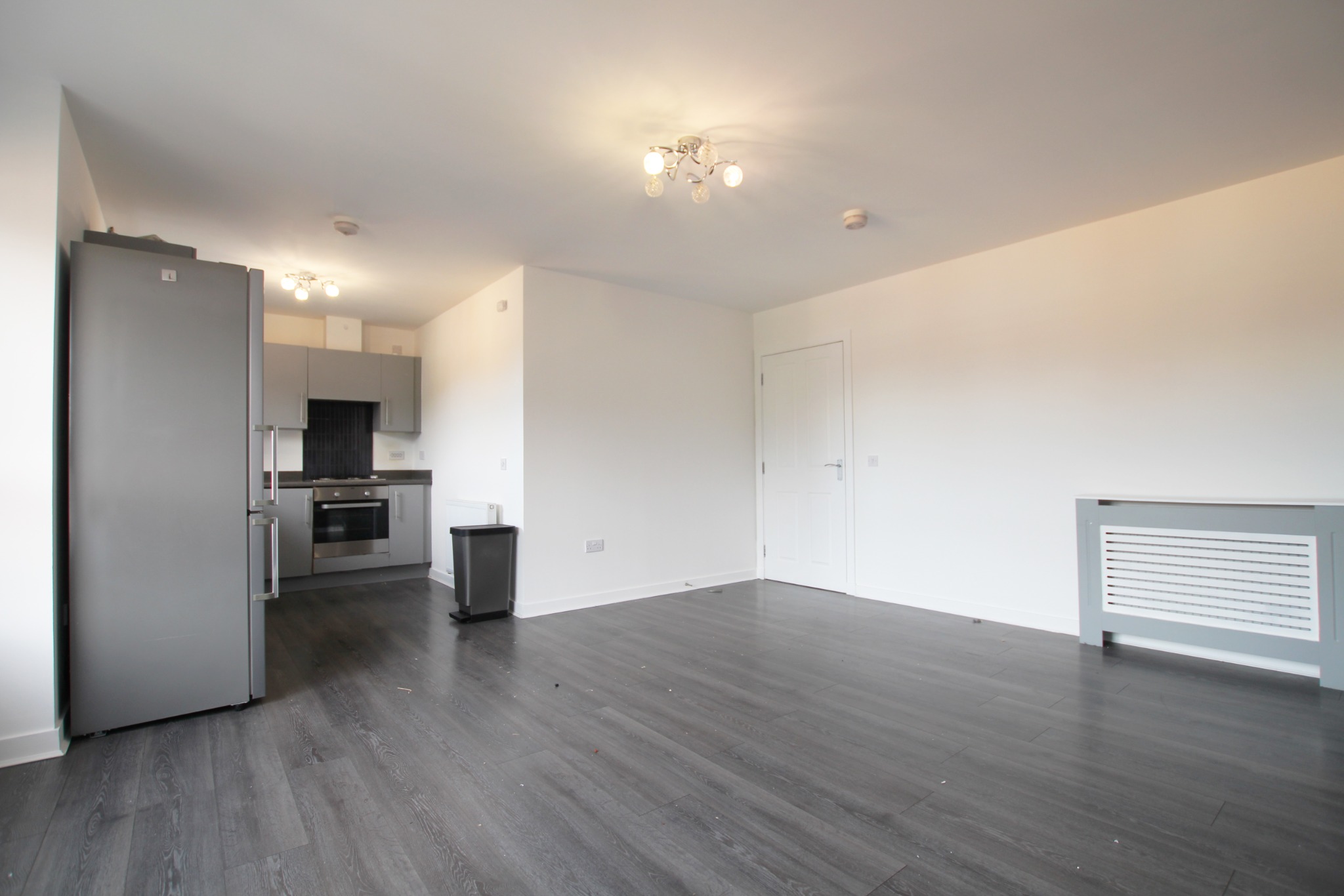 This beautifully presented property features a welcoming entrance hallway with a convenient storage cupboard, leading to two generously sized double bedrooms, one of which boasts a stylish ensuite complete with a modern shower cubicle. The spacious open-plan lounge and contemporary kitchen provide an ideal space for both relaxing and entertaining, with sleek integrated appliances adding a touch of sophistication. A second well-appointed bathroom with a full-sized bath completes the accommodation, offering comfort and practicality throughout.
